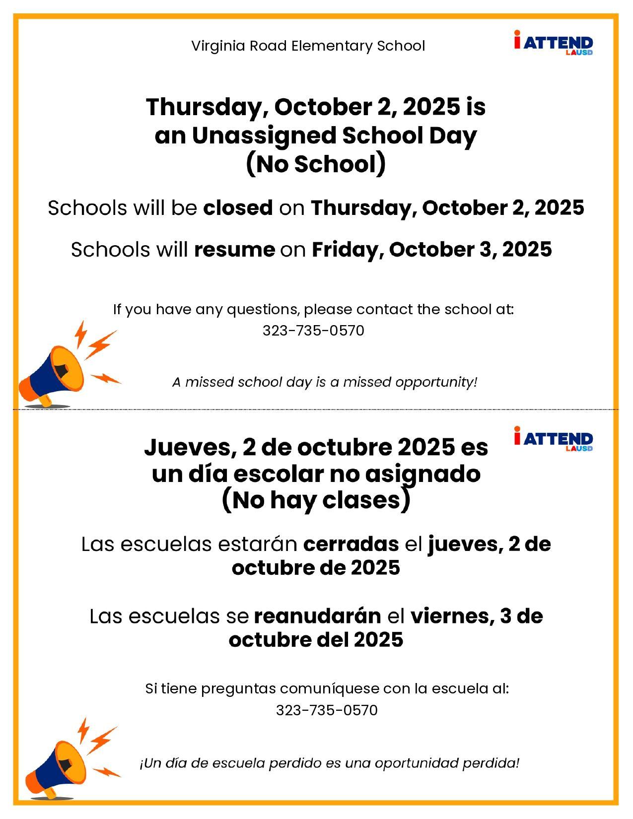 No School on October 2, 2025