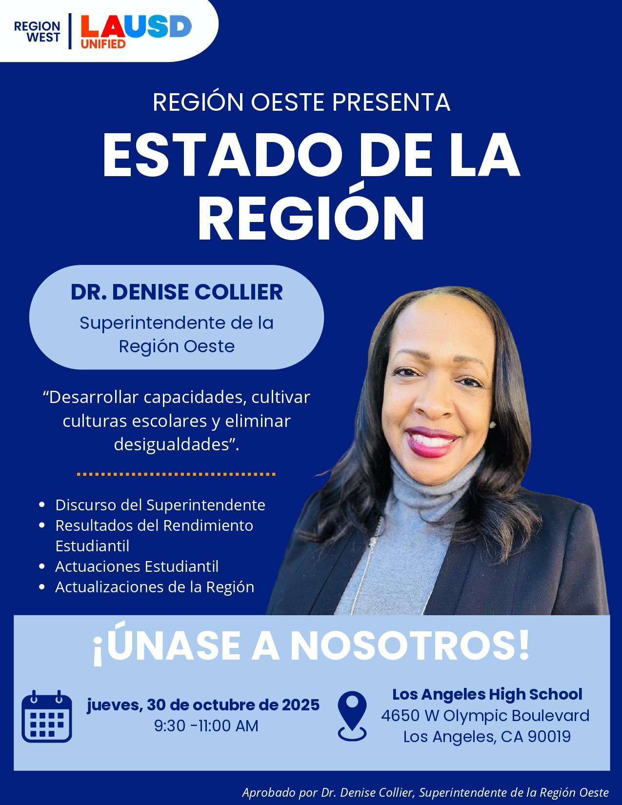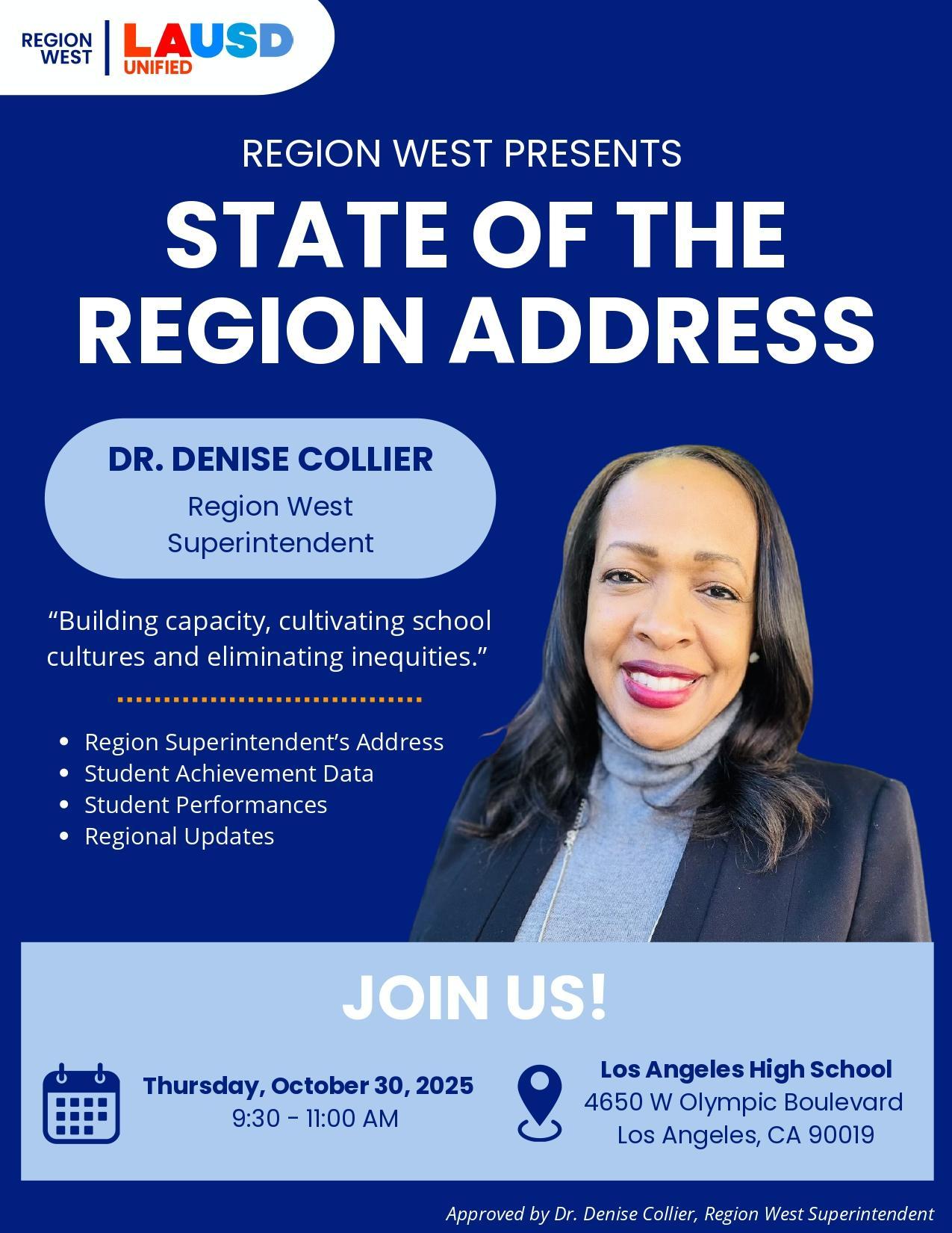 Families are invited to the Region West State of the Region Address with Dr. Denise Collier.